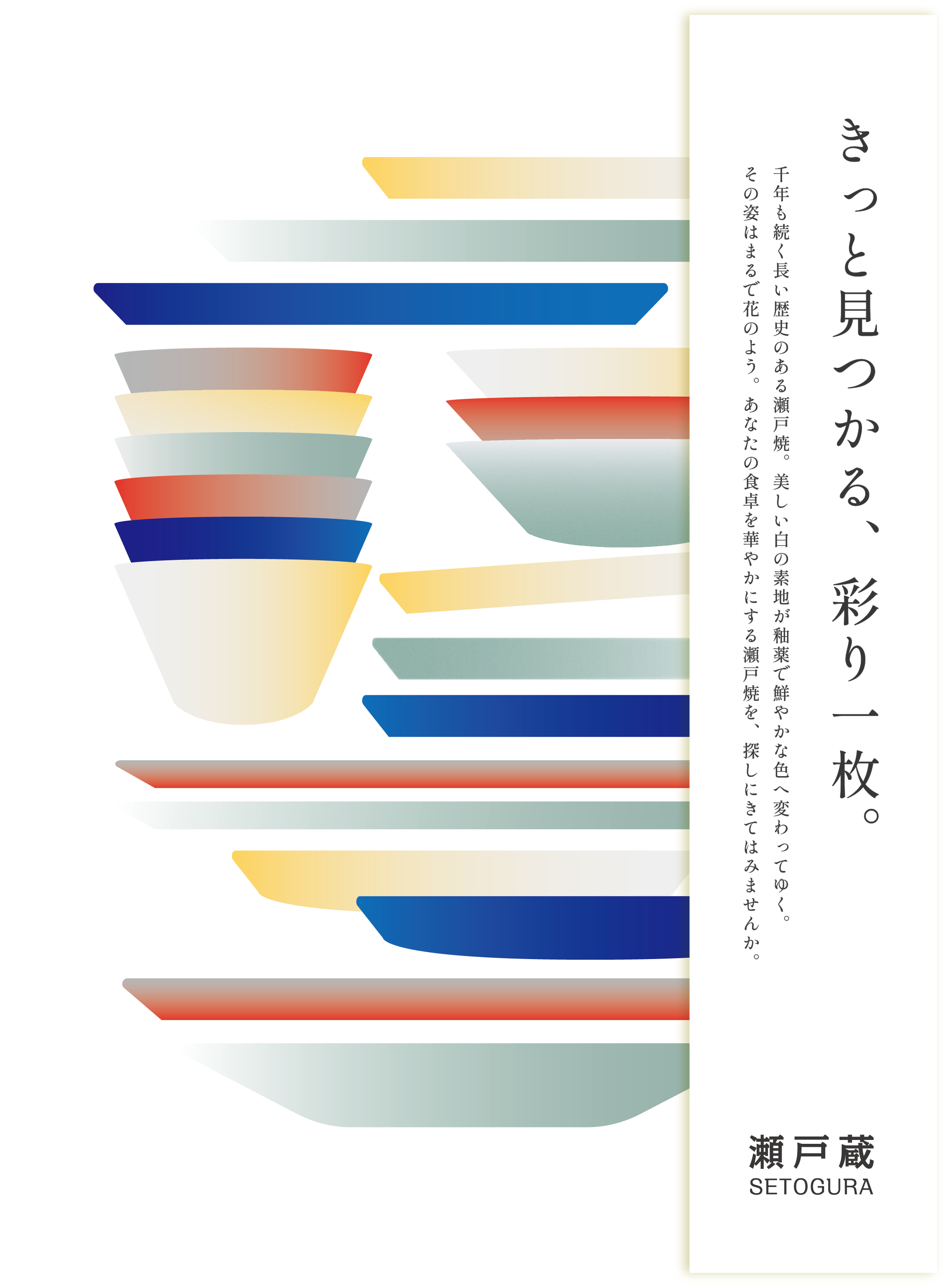 素地が白いことから色鮮やかな焼物が特徴の瀬戸焼をグラデーションを用いて表現しました。