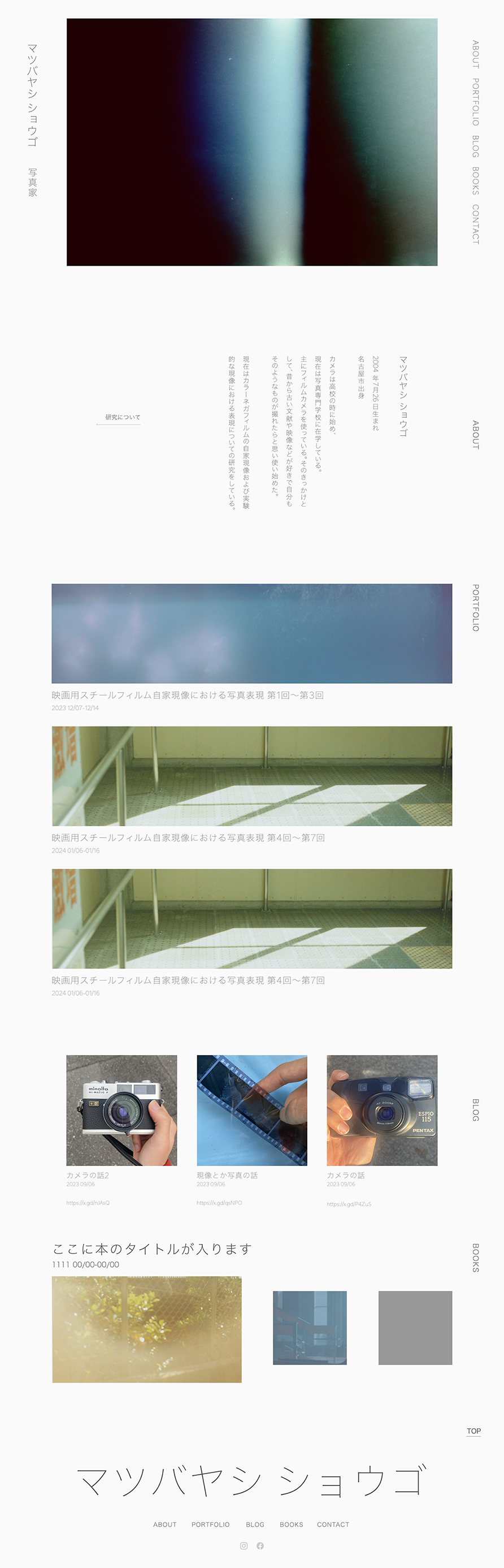 フィルムカメラの研究を行なっている知人のポートフォリオサイトを制作しました。